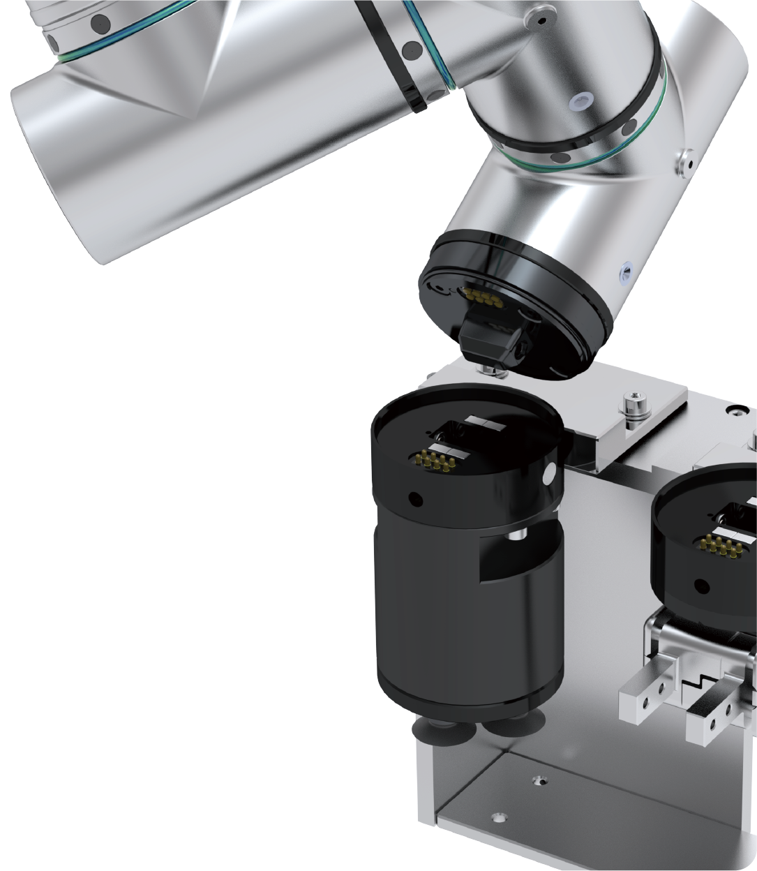 自動工具交換可有效提升作業效率並降低設備停機時間。 cpc 針對微型機器人所打造的系統,採用緊湊型刀具座與關節結構,並提供可客製化的連接器設計,靈活對應多元應用需求,實現高彈性的系統整合。