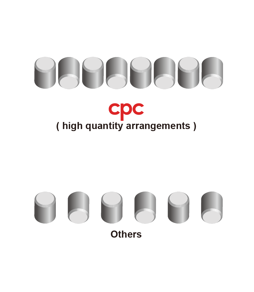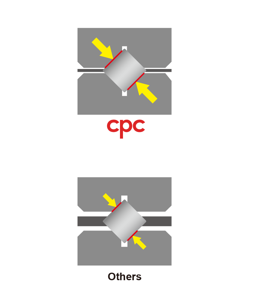 滾動體與滑軌輪廓接觸長度大於競爭對手,所以在相同尺寸規下cpc擁有較高的額定負荷。